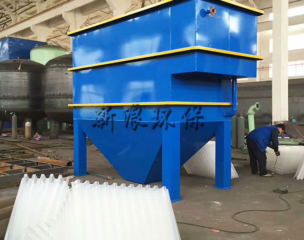 一體化絮凝原理污水沉淀設(shè)備主要由多排多層V型管傾斜組合而成。使用時,由于斜置的V型管壁的作用,各處沉淀到V型管內(nèi)壁上的泥渣均近距離滑向V型管的底角處并沿底角線自動向下滑出管腔,凈化后的清水從沉淀器上口排出,既有利于泥渣與上向流的進水拉開距離,避免了泥渣再次泛起的不利影響,又有利于將集中在V型管底角的泥渣自動沿底角線向下滑出管腔。改善了泥、水分離條件,能有效提高沉淀效果。具有結(jié)構(gòu)簡單合理、沉淀效率高、出水水質(zhì)好,運行穩(wěn)定可靠、工程造價低等.